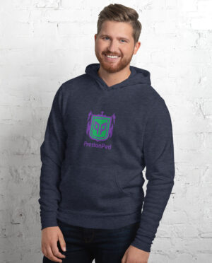 This comfy unisex hoodie has a soft outside with a vibrant print, and an even softer brushed fleece inside. The hoodie has a relaxed fit, and it’s perfect for wrapping yourself into on a chilly evening. – 70% polyester, 27% cotton, 3% elastane – Fabric weight: 8.85 oz/yd² (300 g/m²) – Soft cotton-feel fabric face – Brushed fleece fabric inside – Double-lined hood with design on both sides – Unisex style – Overlock seams – Comes with drawstrings Feel free to contact us if you have any questions. Visit our Facebook Page for PrestonPed.com